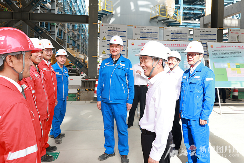 7月30日,自治区党委书记、兵团党委第一书记、第一政委陈小江在库尔勒上库高新区石油石化产业园,察看独山子石化公司塔里木年产120万吨乙烯二期项目建设进展。石榴云/新疆日报记者 崔志坚 摄
