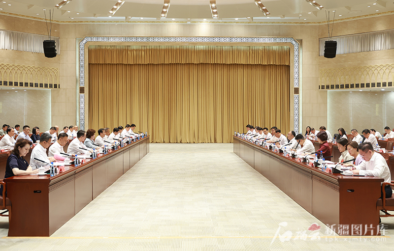 8月4日,自治区党委书记陈小江、自治区主席艾尔肯·吐尼亚孜在乌鲁木齐会见香港全国人大代表视察组一行。石榴云/新疆日报记者 崔志坚 摄
