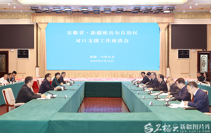 石榴云/新疆日报讯(记者 王兴瑞 张艳芳报道)9月13日至14日,安徽省党政代表团来新疆考察对接对口援疆工作。双方举行工作座谈会,深入贯彻习近平总书记关于新疆工作的重要讲话重要指示批示精神,落实第十次全国对口支援新疆工作会议部署,进一步推动对口援疆工作和新皖务实合作走深走实。安徽省委书记梁言顺,自治区党委书记陈小江,自治区党委副书记、自治区主席艾尔肯·吐尼亚孜,自治区党委副书记、兵团政委何忠友参加有关活动。 14日下午,安徽省·新疆维吾尔自治区对口支援工作座谈会在乌鲁木齐召开。梁言顺代表安徽省委、省政府对新疆长期以来给予安徽发展的支持表示感谢,对新疆经济社会发展取得的成就表示祝贺。他说,自2010年以来,安徽认真贯彻习近平总书记重要讲话重要指示精神和党中央决策部署,深入实施扶智、富民、安居、连心、固本“五大工程”,有力促进了和田及皮山社会稳定和经济发展。今年是新疆维吾尔自治区成立70周年。我们将立足新的起点,坚决扛牢对口援疆重大政治责任,充分发挥安徽和皮山两个方面优势,科学谋划“十五五”对口援疆目标任务,实施一批牵动性强的重大项目、重大工程,持续深化产业援疆、教育援疆、医疗援疆、人才援疆、文化润疆,助力皮山增强发展动能,推进群众增收,促进民族团结,推动实现供需匹配、相互赋能、共同发展,齐心协力把对口援疆工作推向深入。