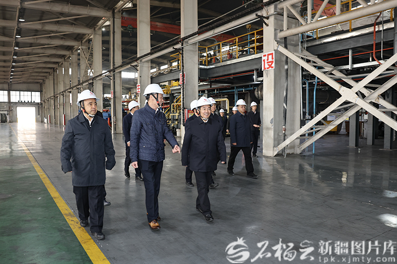 10月14日,自治区党委书记、兵团党委第一书记、第一政委陈小江,自治区党委副书记、自治区主席艾尔肯·吐尼亚孜在双河市新疆新赛生物蛋白科技有限公司调研,听取企业生产经营情况汇报。石榴云/新疆日报记者 谢龙 摄
