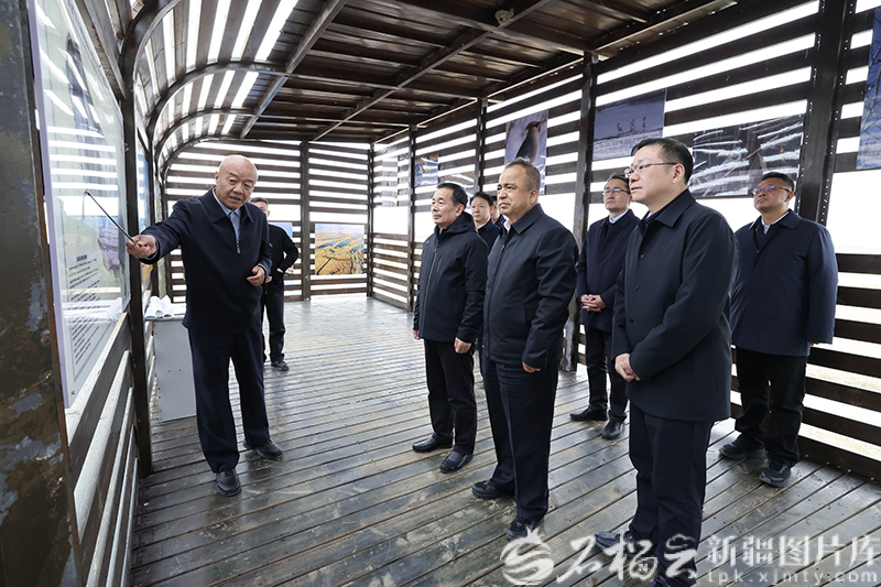 10月14日,自治区党委书记、兵团党委第一书记、第一政委陈小江,自治区党委副书记、自治区主席艾尔肯·吐尼亚孜实地察看艾比湖流域生态环境保护工作。石榴云/新疆日报记者 谢龙 摄