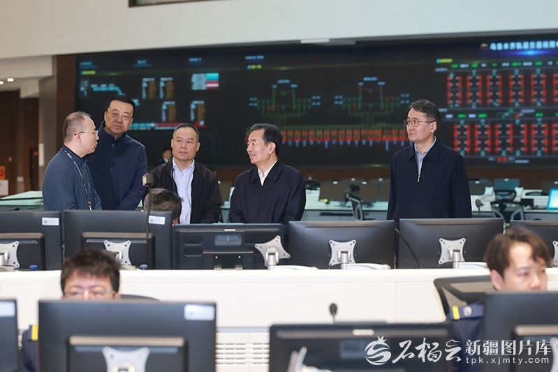 2月20日,自治区党委书记陈小江在自治区应急管理综合监测预警中心,慰问坚守岗位的干部职工,详细听取节日值班值守、应急备勤、重点领域隐患排查整治情况介绍。石榴云/新疆日报记者 崔志坚 摄