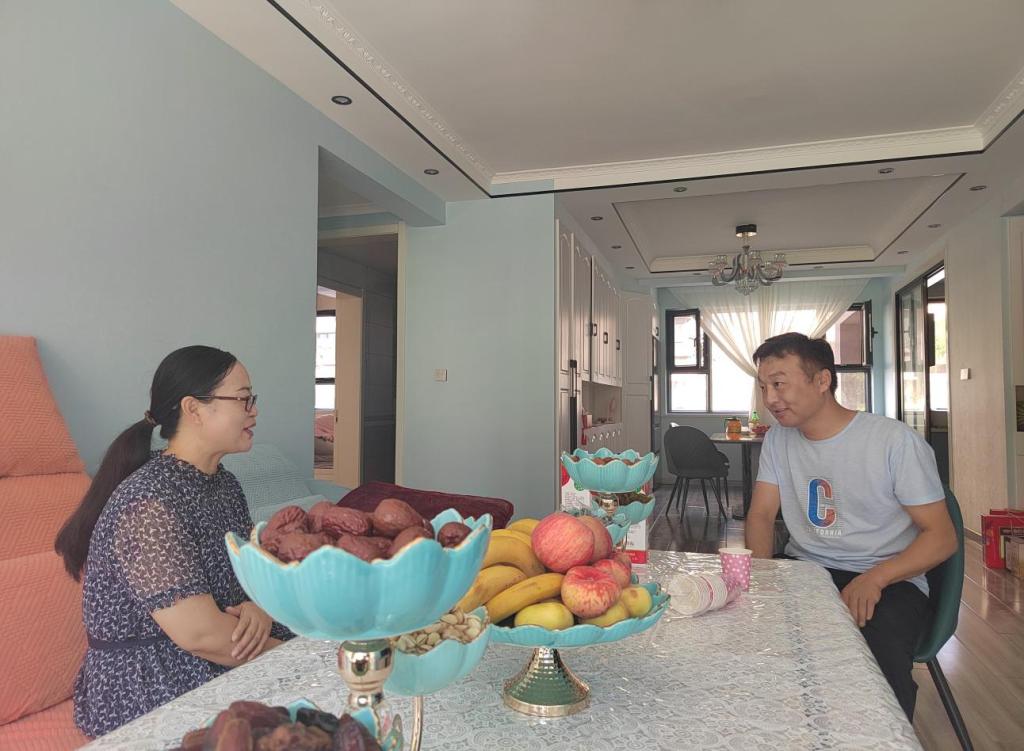 孙莲红书记和木合塔尔的家人聊着家常:“我们发改人平时工作任务重,谢谢家属们的支持。工作中发改人都是拧成一股绳,团结一心,克难攻坚,开拓进取,紧跟党委和政府的工作节奏,为精河的经济高质量赶超发展贡献着自己的一份力量,每一份成绩的背后,都凝聚着全体发改人的心血和期盼。最近一段时间,木合塔尔好好陪伴家人,好好照顾爱人孩子,她们都是咱们发改人的家属。”