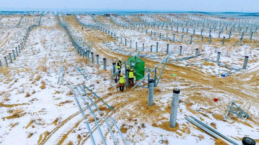入冬以来,精河新华新能源有限公司“光热储能新能源”一体化基地项目(简称:精河光热一体化项目)建设热度不减,在项目光伏区施工现场,施工人员在技术员的指导下,有序进行光伏支架安装和组件安装,全力推进工程进度。