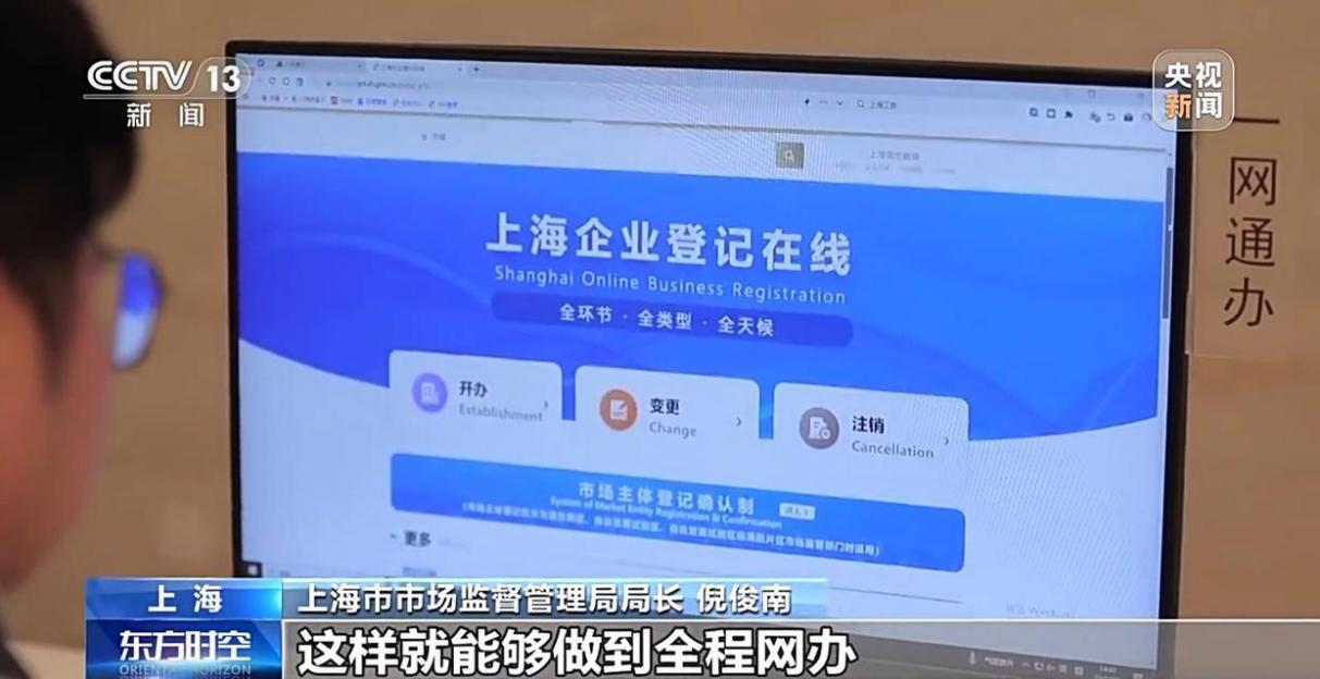 上海市市场监督管理局局长倪俊南:以前比如说一些外资企业,我们主要的难点是一些外资企业的法定代表人或者投资人,他的身份核验有所困难,这次我们对于连锁型的企业,通过他的法定代表人,可以授权给国内进行登记注册的相关人员,通过这个人员再来进行办理,这样就能够做到全程网办。