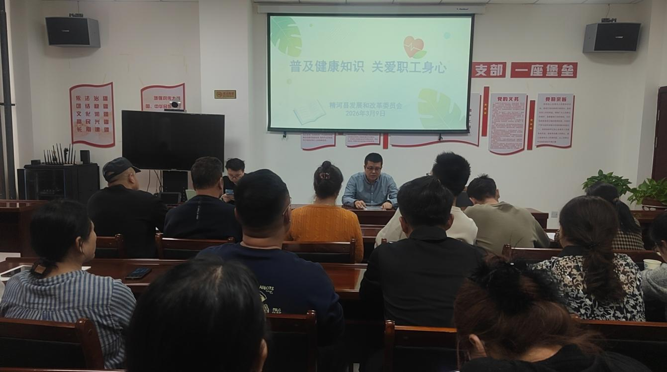 为进一步提升干部职工健康素养,倡导科学文明生活方式,切实关心关爱干部职工身心健康,3月9日,精河县发展改革委组织开展健康教育专题讲座,全体干部职工参加。