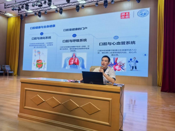 活动现场,口腔科医护人员通过精心准备的PPT和生动有趣的科普小视频,深入浅出地向学生们讲解了口腔基础知识、龋病防治、牙龈出血预防,讲座重点强调了减糖对口腔健康和全身健康的重要性。通过生动的案例分析和互动问答,学生们不仅加深了对口腔健康重要性的认识,还掌握了科学的口腔保健方法。