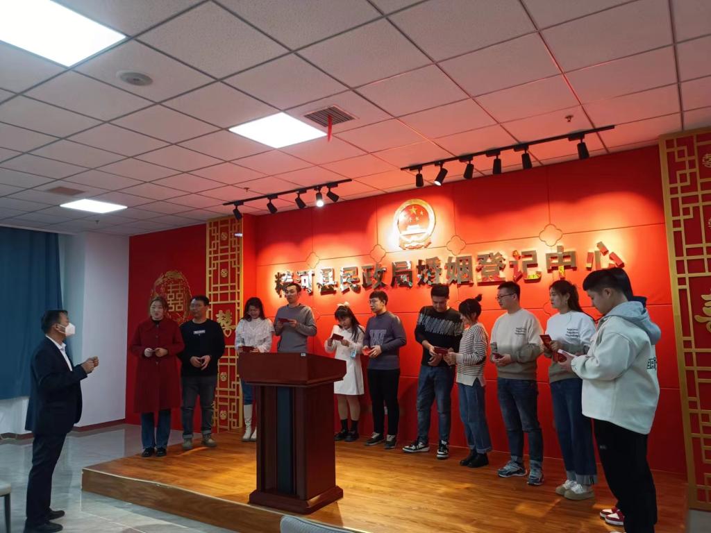 为确保婚姻登记工作人员有效运行,精河县民政局分管领导一线指挥,并增派1名工作人员协助登记,现场业务咨询、流程引导、疑难解答、宣传婚姻登记有关知识、资料复印等方式减少登记压力,确保了婚姻登记工作的平稳有序。在现场,许多准新人在等候区排队登记,每对准新人脸上洋溢着幸福的笑容。他们在工作人员的见证下共同宣读结婚誓词,在这个意义非凡的日子里郑重承诺,开启了人生的另一段旅程。