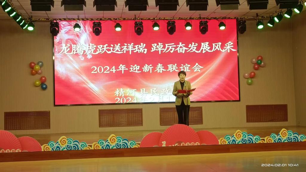 在2024龙年春节来临之际,为营造积极健康、昂扬向上的工作氛围,不断增强民政系统干部队伍的凝聚力和向心力,努力打造一支团结奋进、踔厉奋发的民政干部队伍。2月1日,精河县民政局组织开展“龙腾虎跃送祥瑞 踔厉奋发展风采”2024年新春联谊活动,全县民政系统40余名干部职工参加活动。