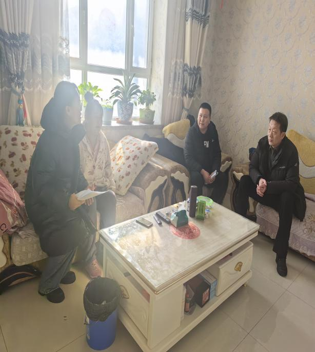 在新春佳节即将来临之际,深入贯彻落实党的二十大精神,为让老干部感受到党组织的关怀关爱,让他们过一个幸福美满的节日。2月7日,精河县民政局党组书记、副局长李慧玲、党组副书记、局长武常胜、党组成员、副局长对山·道斯木汗一行三人分组走访退休干部,与老同志聊近况、话家常,详细了解身体健康状况和生活情况,向他们送上节日的问候和新春的祝福。