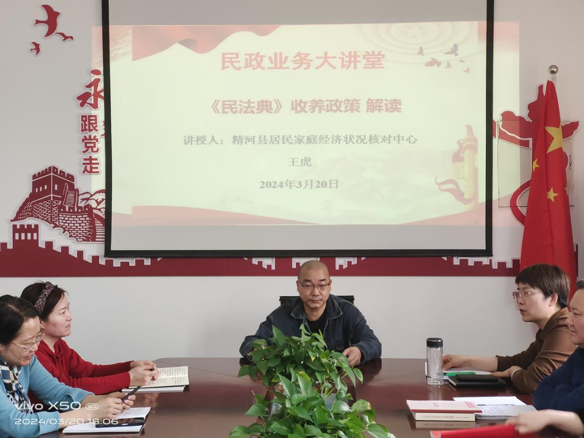 为不断增强民政干部队伍政策理论水平和工作能力,全力打造学习型机关,近日,精河县民政局举办了“民政业务大讲堂”,局领导班子成员,机关全体工作人员和事业单位负责人参加。