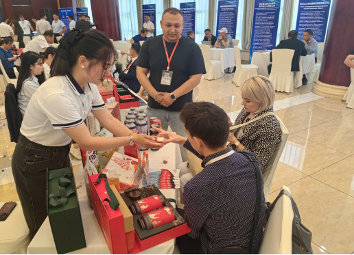在精河展区前,博州党委副书记、州长巴音克西向来自哈萨克斯坦的领导及客商详细介绍了精河农产品,并邀请大家品尝精河特色枸杞产品,大家品尝后赞不绝口,现场购买了一些枸杞产品带给家人品尝。