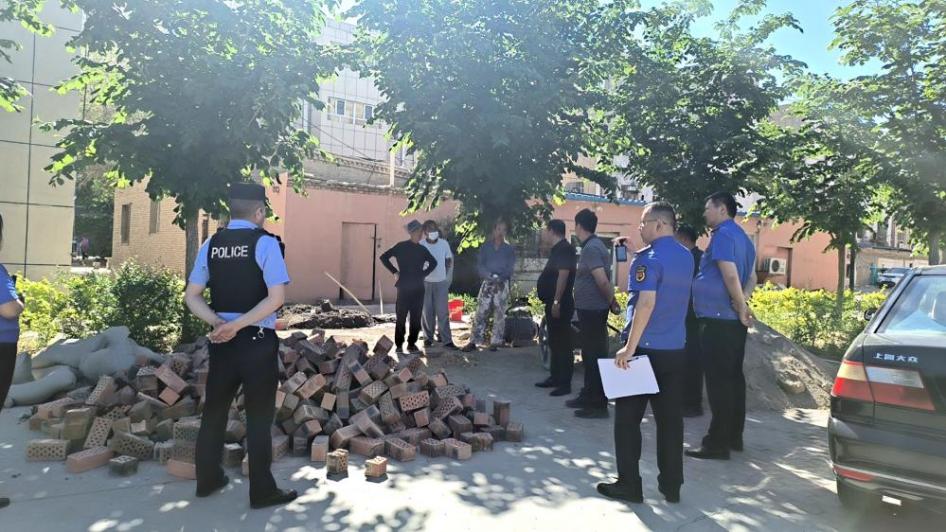 2024年5月9日,在精河县城乡监察执法大队执法人员、茫丁乡社区、物业、警务站的见证下,茫丁乡某户业主对涉嫌违规搭建(构)筑物的墙面立柱棚进行初步拆除。