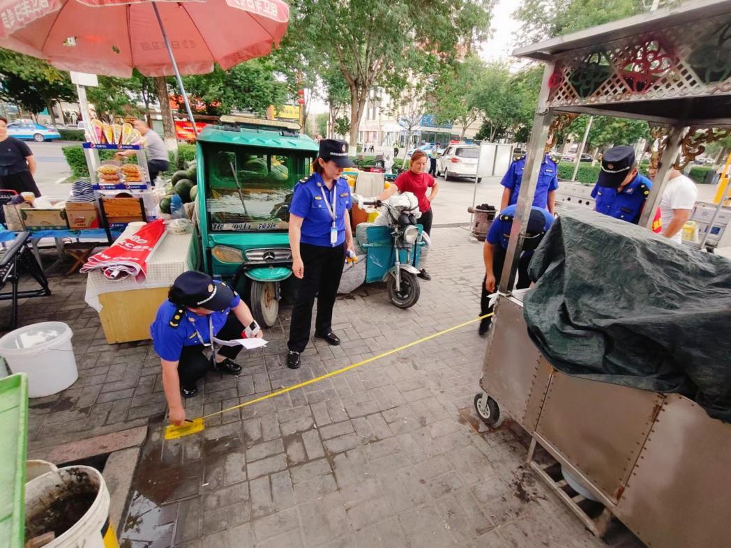 经过实地察看、科学研判、意见征求后,精河县城乡监察执法大队大队长贾尔旦别克组织安排执法人员,按照“便民利民、疏堵结合、规范有序、活跃经济”原则,在不占用行车道、盲道且不影响交通出行的前提下,在和平小区北门处“绘画”设置40余个临时摊点(其中水果摊20处、烧烤摊24处),并积极引导摊贩到划定区域摆摊设点、规范经营,在维护市容市貌秩序的同时,更好地服务群众生活。