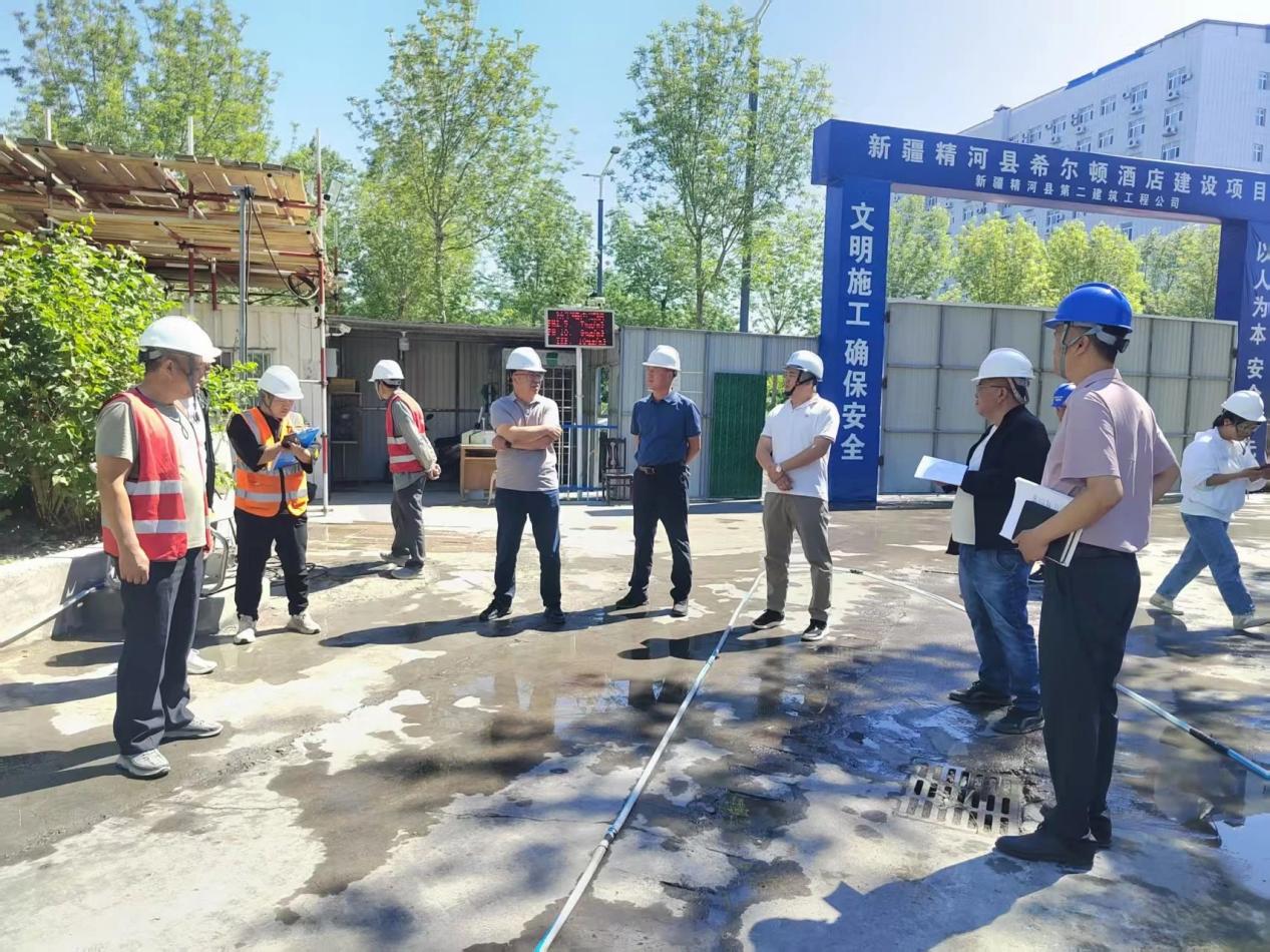 检查组一行来到精河县汇富中心广场建设项目、新建希尔顿花园酒店建设项目施工现场,通过实地勘察、查阅资料、随机提问等方式,对工地围挡封闭、物料覆盖、洒水降尘、车辆冲洗等扬尘防治措施落实情况进行细致检查。