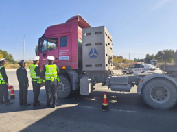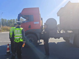 2024年10月10日精河县交通运输局执法大队联合交警部门在精河县环城路进行超限超载联合执法,对过往货运车辆进行证件资质检查,并告知货运车辆驾驶员做到平箱装货、杜绝超限超载,当天共检查货运车辆21辆。