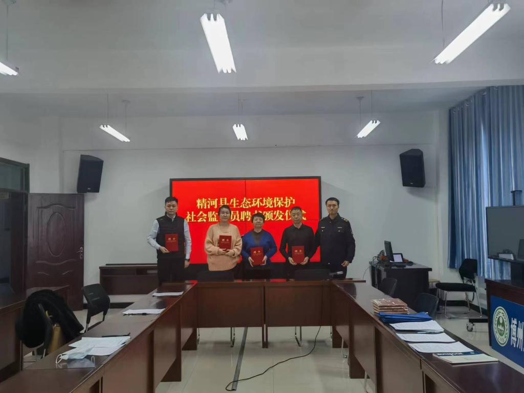 为深入推进生态立县,提高精河县生态环境质量,加强环境保护工作社会监督2月10日上午,博州生态环境局精河县分局举行精河县生态环境保护监督员聘任仪式暨第一次工作会议,共聘请4名来自既有人大代表、政协委员、退休干部及企业生态环境保护监督员正式受聘上岗。