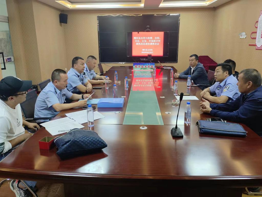 为推动水法、防洪法、水土保持法等法律法规落地见效,加大关系群众切身利益的河湖领域执法力度,2023年9月22日,全县检察、法院、司法、公安、环保、水利等部门组成联合执法检查组,开展全县河湖安全保护专项执法行动。