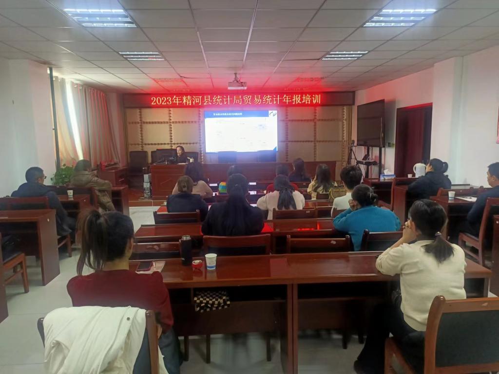 为贯彻落实全国贸易统计工作会议精神,进一步提高贸易企业统计人员业务能力和水平,强化依法统计意识,全面完成好2024年统计工作。精河县统计局12月28日召开了全县贸易统计业务培训会。规上商贸企业和大个体统计人员共29人参加了培训。培训的主要内容有:统计法知识学习、布置贸易2023年统计年报和2024年定期报表制度、贸经专业普查的主要内容,贸易统计调查业务知识、数据质量把控,报表分析及工作中易出现的细节问题进行了详细讲解。