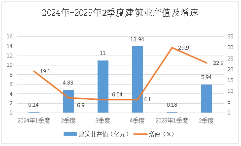 上半年,全县共有施工总承包和专业总承包建筑业企业9家,完成总产值5.94亿元,同比增长22.9%,较一季度回落7个百分点,较去年同期增长16个百分点,高于全州2.6个百分点。