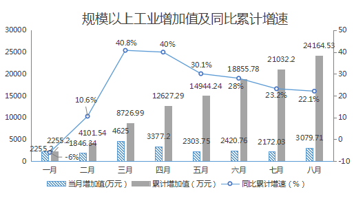 1-8月,精河县规模以上工业企业完成工业产值8.57亿元,实现增加值2.42亿元,同比增长22.1%,较1-7月回落1.1个百分点。其中:8月当月实现增加值0.32亿元,同比增长12.3%。