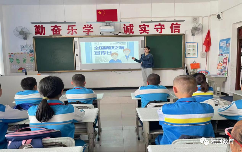 精河县第一小学邀请县妇幼计生服务中心的潘妮医师为全校师生进行碘缺乏病防治知识健康讲座,各班通过直播方式进行观看,全校师生对碘缺乏病有更深入的了解和认识,只有食用碘盐是最好的防治碘缺乏病的最好方法。