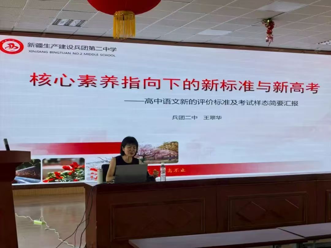 语文分会场由兵团二中王翠华老师主讲,其《核心素养指向下的新标准与新测评》讲座系统解读新课标要求,《用课题研究引领教师职业成长》讲座以案例指导教师将教学困惑转化为研究课题。精河县高级中学李成园、郑红丽老师呈现高考复习示范课,王翠华现场点评并作《新高考语文命题规律及应对策略》报告,提出“题型归类+方法建模+真题演练”备考方案,其“思维导图式答题模板”获一致好评。
