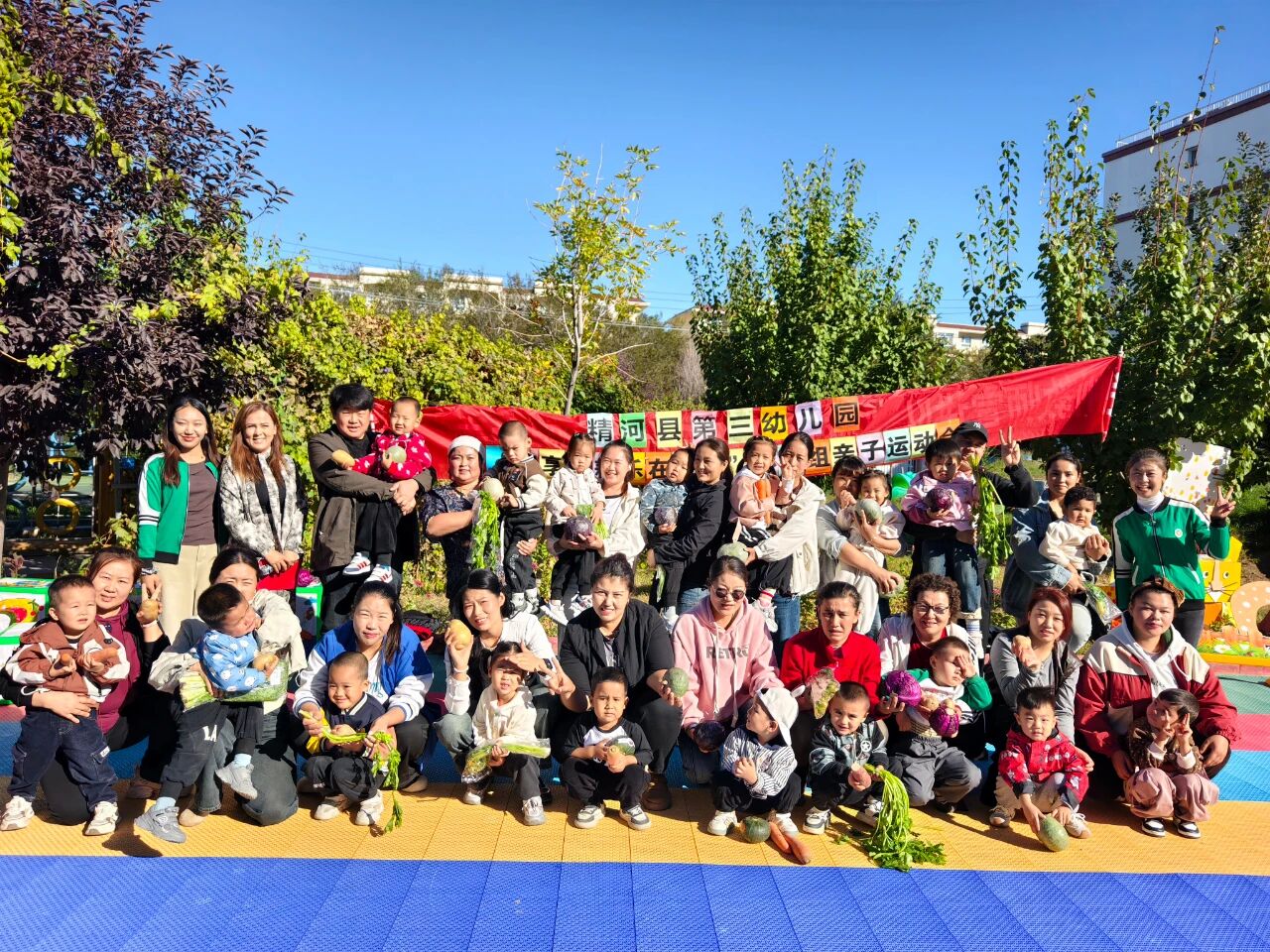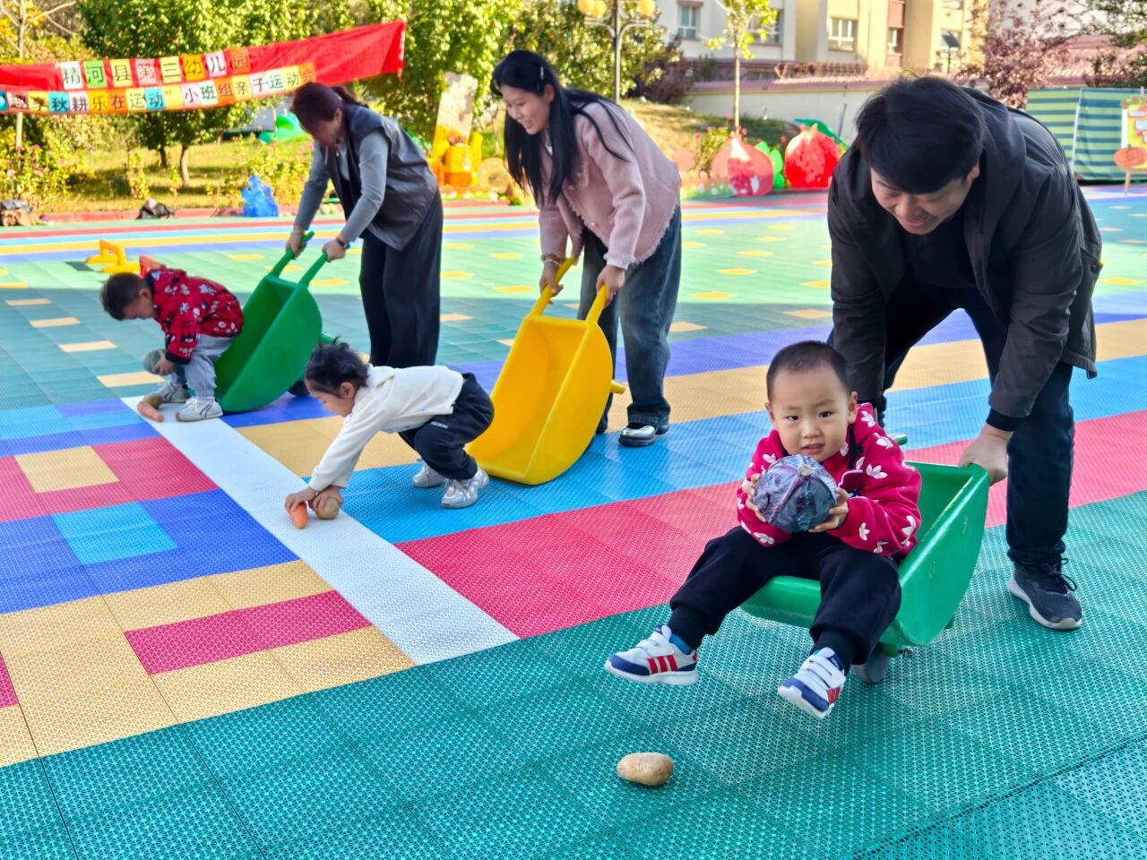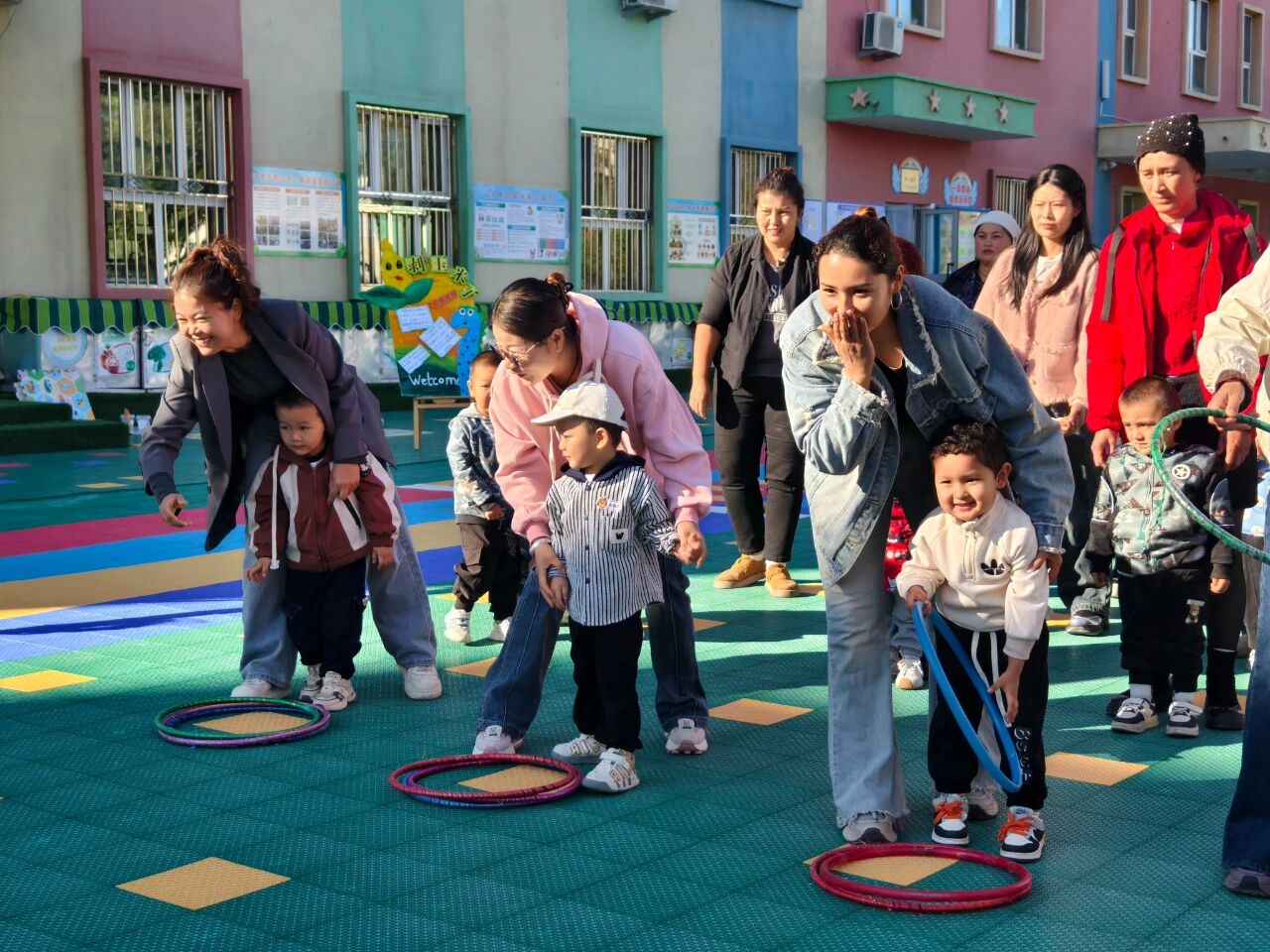 同日,在精河县第三幼儿园,一场“趣享秋耕,乐在运动”的亲子运动会,让操场变成了欢乐的农场。