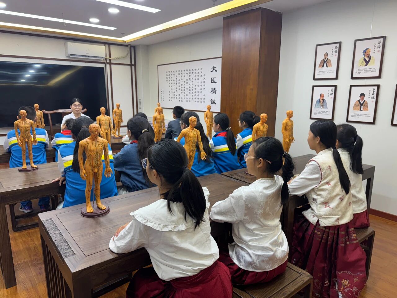 “腕横纹上三指宽处,就是内关穴……”精河县中医院主治医师张雅丽正手把手地指导孩子们寻找穴位。9月23日,精河县第二中学六年级(6)班的同学们将课堂搬到了这里,开启了一场中医药文化探索之旅。