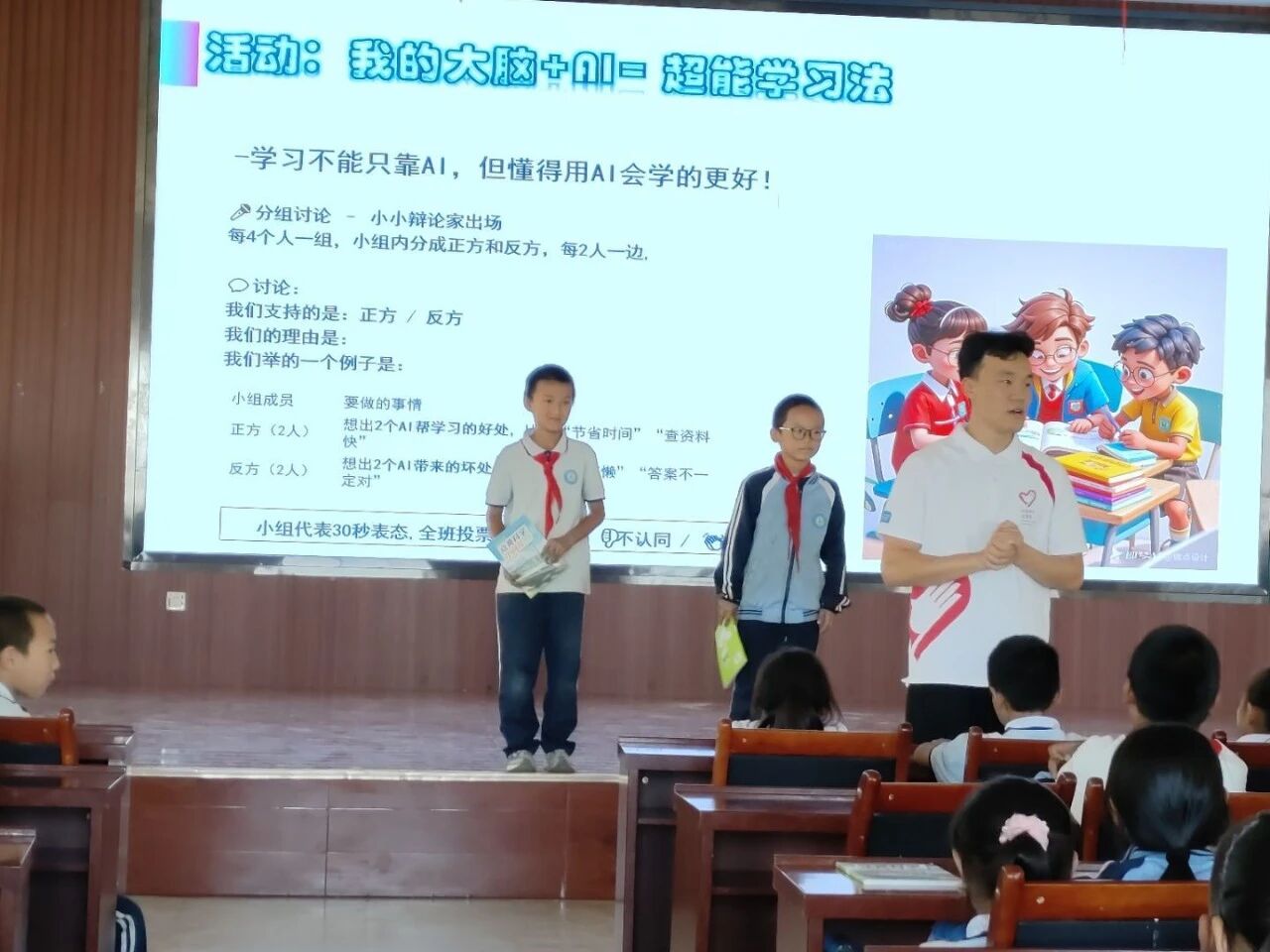 申旭辉以“AI的超能力”为主线,通过生动比喻和实例,深入浅出地揭示了人脸识别、语音交互、机器学习等核心能力。同学们听得津津有味,积极互动,踊跃回答,不时发出阵阵惊叹,探索热情高涨。通过视频和案例,志愿者们还展示了AI在日常生活、医疗健康、环境保护等领域的广泛应用,引导孩子们思考科技如何改变未来。
