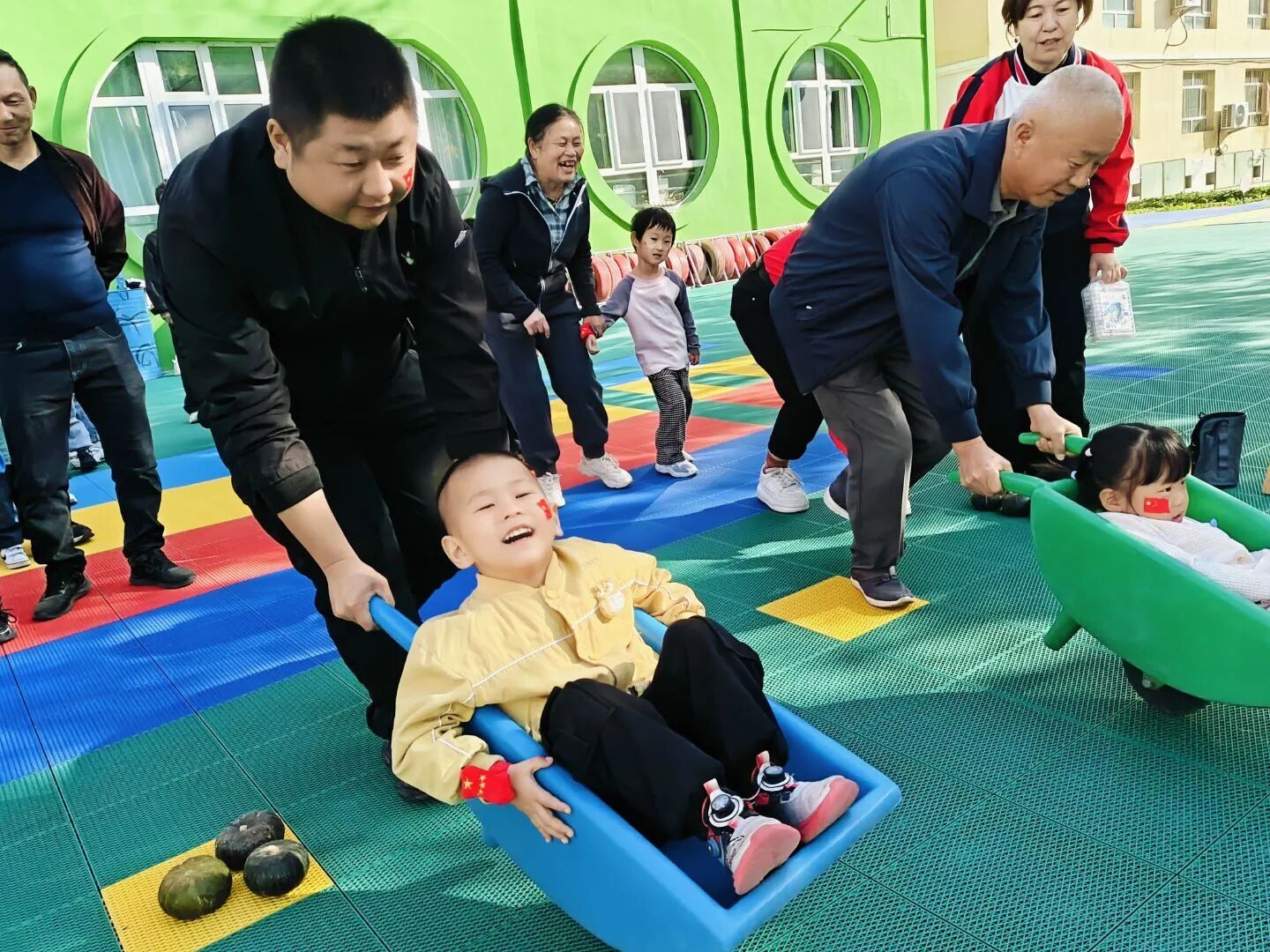 热身环节,亲子伴着《娃哈哈》的旋律欢快起舞。“推车运粮”“玉米大丰收”“小兔种萝卜”等秋收游戏,让“爸爸加油”“妈妈帮我”的稚嫩呼喊与协作爱意一同升温。