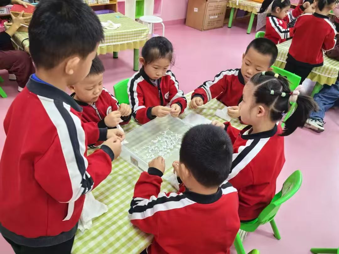 调制纸浆糊环节将活动推向高潮。孩子们轻轻地将软化纸屑与胶水搅拌,松散的纸屑变成了粘稠的纸浆。尽管小手沾满纸浆,孩子们的脸上却写满专注与快乐。最后,孩子们将挑选亮片、小珠子、干花等材料,巧妙点缀自己的纸浆画,一幅幅色彩斑斓、造型各异的作品便成功跃然纸上。
