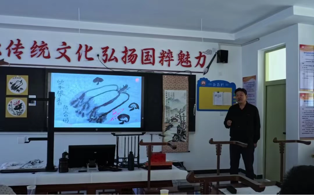 培训首场讲座由县高级中学美术教师张建设主讲。他以《中国水墨画中“托物言志 言物寄情”表现手法浅析》为题,从五代黄筌《写生珍禽图》到近代齐白石《蛙声十里出山泉》,系统梳理了中国画的艺术脉络,深入解读了《韩熙载夜宴图》的叙事细节、徐渭《墨葡萄》的泼墨豪情等经典作品。张老师还分享了将名作赏析融入课堂的实用策略,为破解“欣赏课难上”问题提供了具体方案。