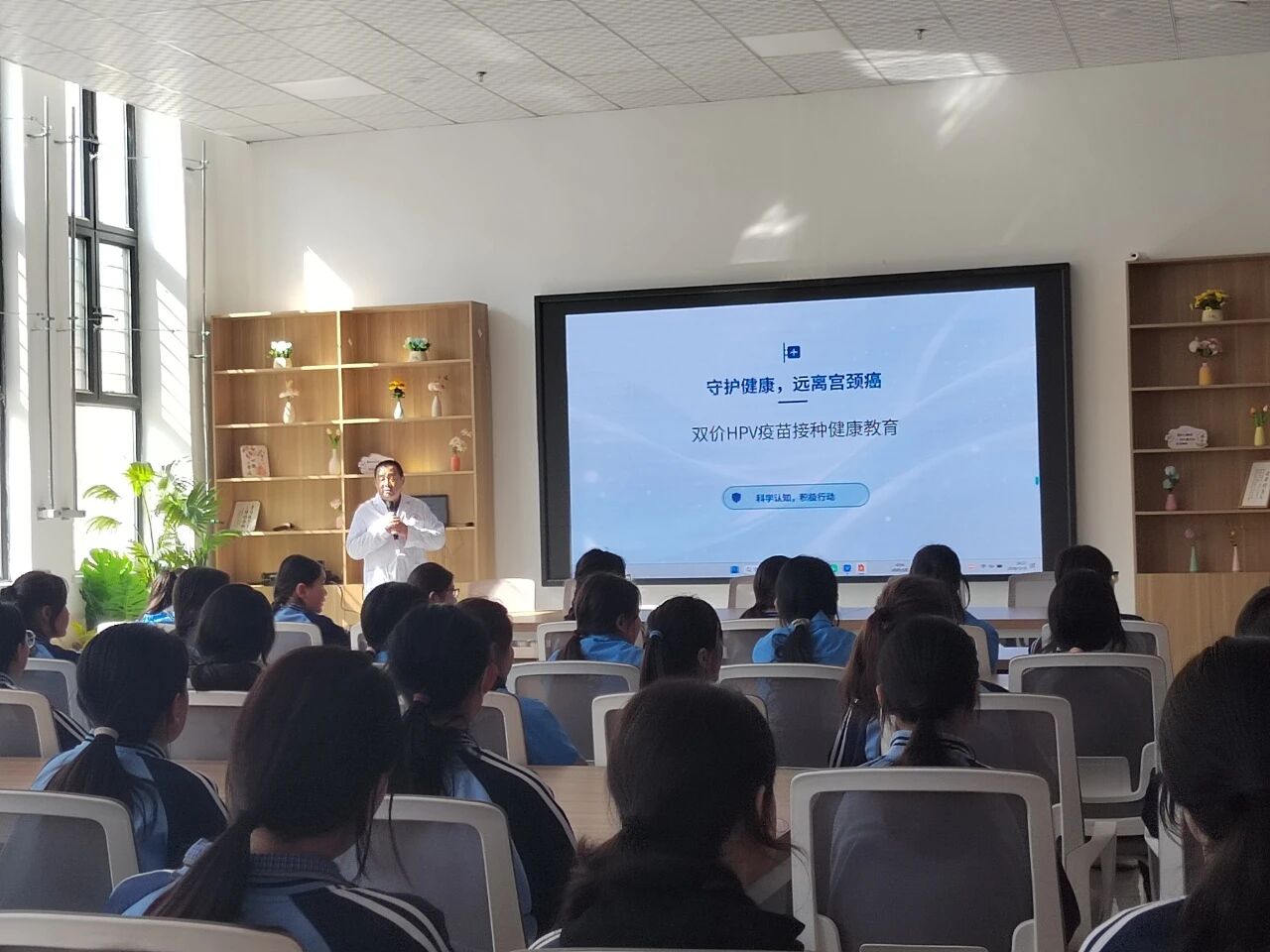 活动中,县卫健委选派的专业医护人员围绕HPV病毒危害、宫颈癌预防、疫苗接种意义、接种年龄、接种程序、疫苗安全性、常见误区解答等内容,用通俗易懂的语言、图文并茂的课件,结合青少年生理特点进行细致讲解。人乳头瘤病毒(HPV)疫苗已正式纳入国家免疫规划。适龄女生尽早接种HPV疫苗是预防宫颈癌最经济、最有效的手段,早接种、早保护,能最大限度降低感染风险。