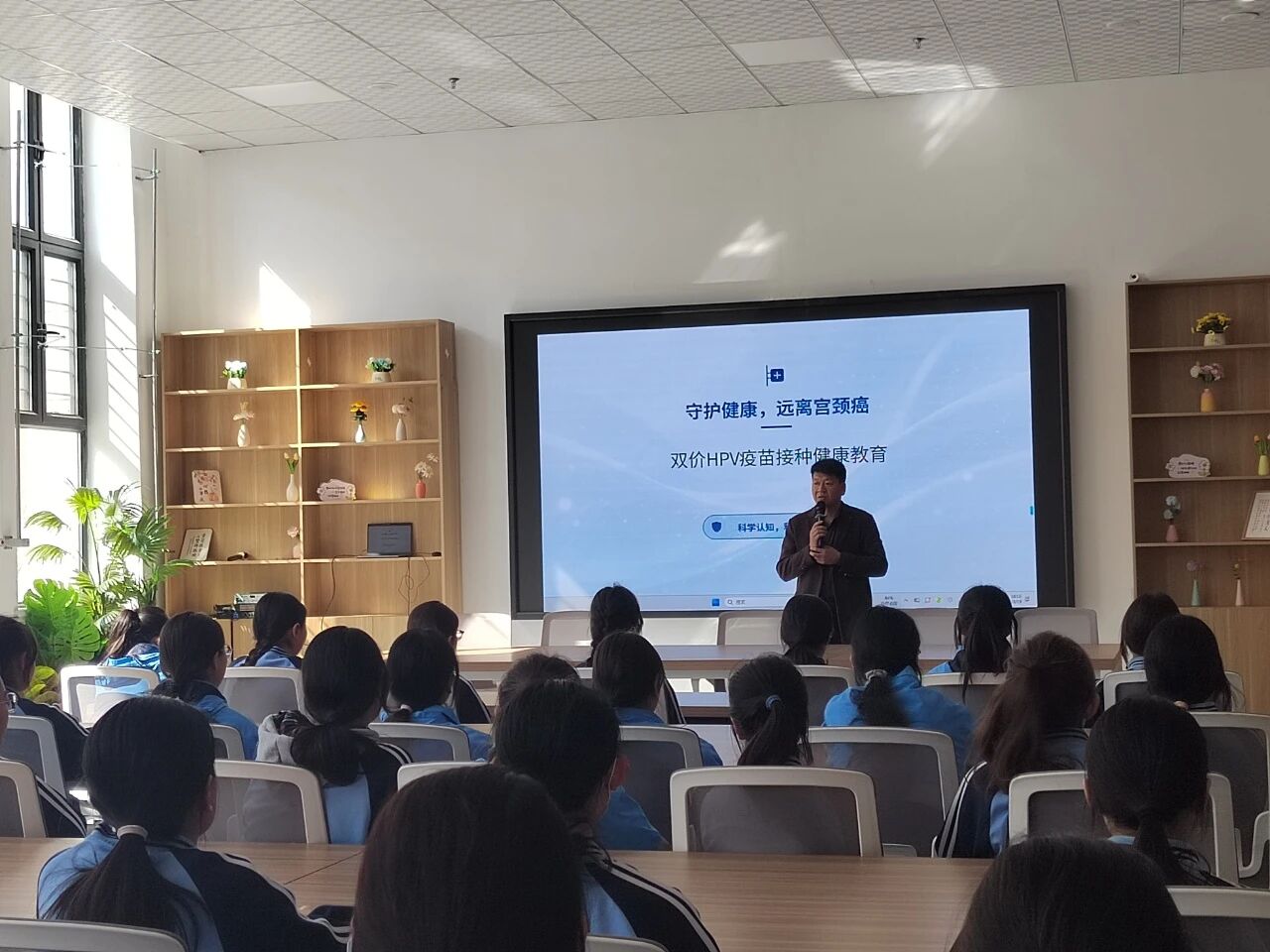 学校高度重视、精心组织,有序组织适龄女生参与讲座。同学们认真聆听、积极互动,纷纷表示将把所学知识告知家长,共同做好健康规划与接种安排。活动同步发放健康宣传资料,进一步扩大科普覆盖面,营造“知晓HPV、重视预防、主动接种” 的良好氛围。
