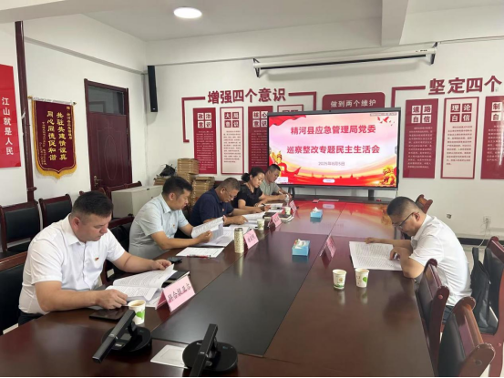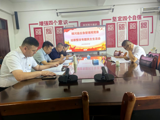 2025年8月5日,精河县应急管理局党委巡察整改专题民主生活会在局四楼会议室召开,局党委书记、副局长谢启明主持会议,县纪委监委第四派驻纪检组组长桂江智到会指导。