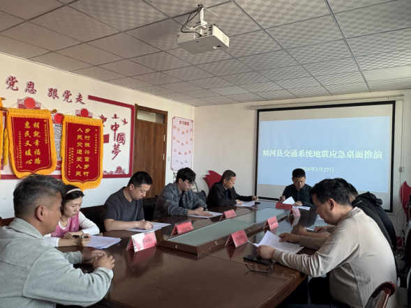 为深入贯彻落实习近平总书记关于防灾减灾救灾重要论述,切实提升交通运输行业地震灾害应急处置能力,3月27日下午,精河县防震减灾中心联合县交通运输局,在局机关会议室开展地震应急桌面推演,县交通运输局各科室、执法大队、养护站及客运、货运、路桥建设等企业负责人共30余人参加。