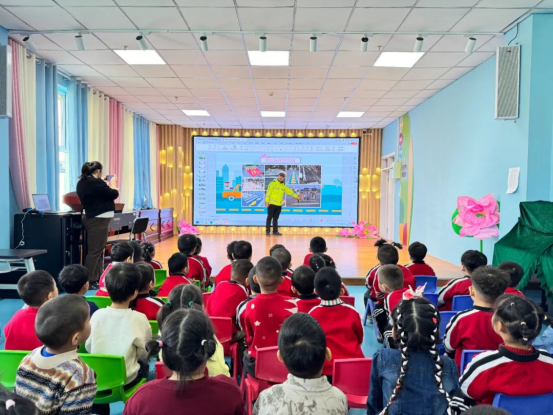 春日的晨曦温柔地洒在幼儿园里,孩子们如同欢快的小鸟,在班级里嬉笑玩耍。殊不知一场既趣味盎然又意义非凡的交通安全知识课堂即将拉开帷幕。4月5日,精河县公安局交警大队的民警带着“安全知识小礼物”走进了茫丁乡育才幼儿园,受到了小朋友们的欢迎。