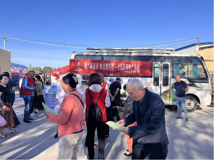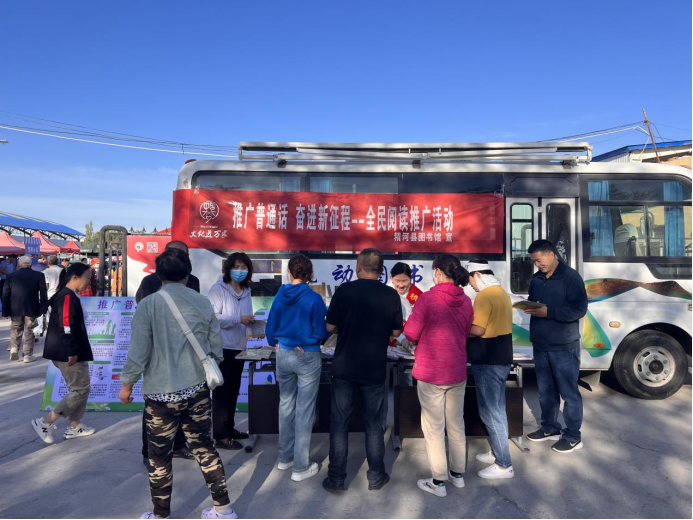 为做好“第26届全国推广普通话宣传周”宣传活动,加大国家通用语言文字推广力度,传承弘扬以语言文字为载体的中华优秀文化,提升国家通用语言文字普及程度和普及质量。9月11日,精河县图书馆在茫丁乡及友好门前开展“推广普通话 奋进新征程”全民阅读推广活动。