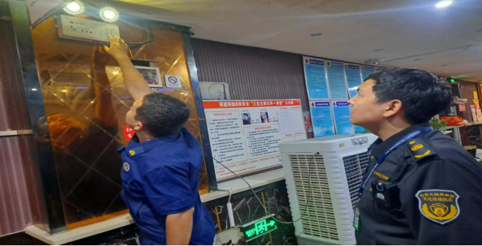 检查过程中,各部门执法人员重点对场所是否接纳未成年人、是否张贴未成年人禁止入内或限入标志、歌曲点播系统视频画面、歌词曲目等是否含有《娱乐场所管理条例》第三十条规定的禁止内容、是否未按规定核对、登记上网消费者的有效身份证件或者记录有关上网信息;实施的经营管理技术措施是否擅自停止;安全出口指示标示标牌是否张贴在明显位置、消防通道是否畅通、消防器材和消防设施设备是否正常运行、应急预案、应急演练等10项内容进行检查。