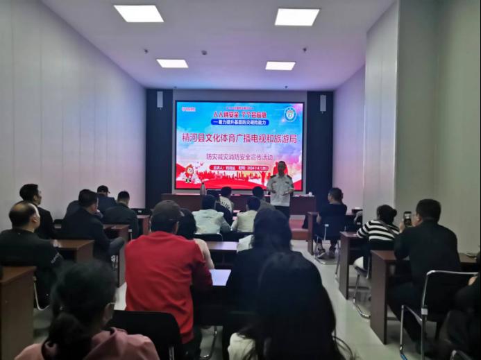 为深入贯彻落实习近平总书记重要指示精神和自治区、自治州文旅部门安全生产工作部署要求,进一步提升文旅行业安全生产应急处置能力。4月28日下午,精河县文化体育广播电视和旅游局联合乌鲁木齐政安防火知识宣传中心伊犁分中心教官刘诗丛在三楼会议室开展文旅行业守法经营和消防安全知识培训,精河县各公共文化场馆,娱乐场所、网吧、影院、印刷厂、旅行社、文化艺术类校外培训机构、A级景区、星级酒店、体育经营场所安全责任人共44余人参加了培训。