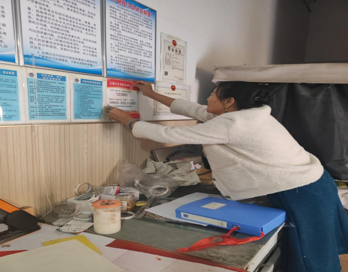 在检查过程中,工作人员还向经营户、群众广泛宣传“扫黄打非”相关知识及法律法规,在场所及学校周边、商业街区等人流量较大的区域显著位置张贴 “扫黄打非”举报电话标识,共张贴举报电话标识百余份,覆盖场所48处,有效提高了群众知晓率和经营者遵纪守法经营意识。