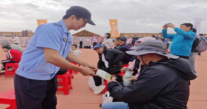 在第15个“中国旅游日”来临之际,以“锦绣山河·美好旅程”为主题的“5·19中国旅游日”精河县主会场活动在木特塔尔沙漠景区举办。为进一步繁荣发展社会主义法治文化,进一步提高公民法治素养,结合“5·19中国旅游日”活动主题,精河县文体广旅局在木特塔尔沙漠景区举办“法律进景区”普法宣传活动。