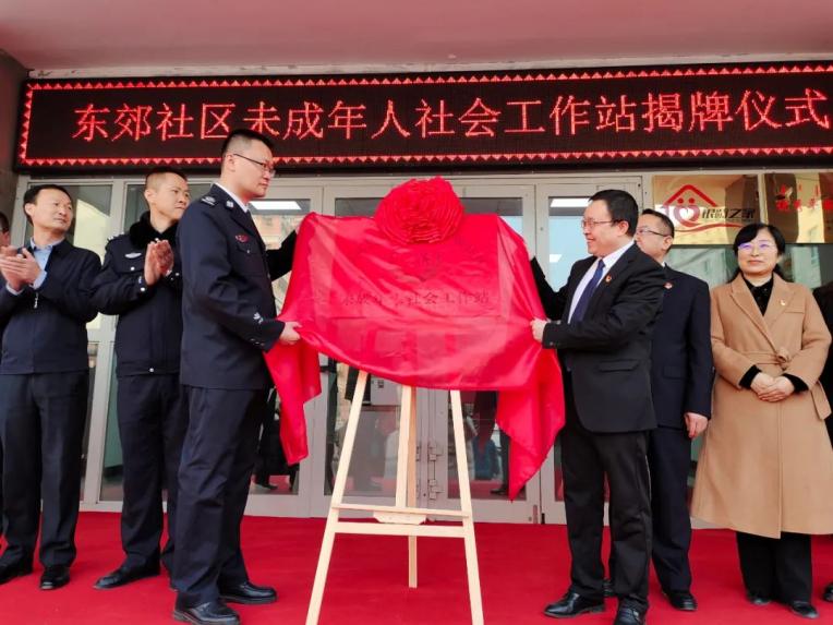 为深入贯彻落实《中华人民共和国未成年人保护法》,进一步推进和完善社区未成年人保护工作水平,3月5日,精河县首个未成年人社会工作站挂牌仪式在红星街道东郊社区举行。县人民检察院、县人民法院、县委政法委、公安局、司法局、团委、妇联等13家相关单位主要领导及县人大代表、政协委员、红星街道社区党员干部群众等80余人参加了揭牌仪式。