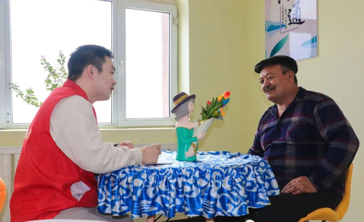 “大叔你入党多少年了?我也入党一年多了,您是我的老前辈,最近家里怎么样都还好吗?以后有什么困难您给我们说,我们帮您解决。”循声望去,大河沿子镇社工服务站志愿者正在给辖区老人艾尼做心理咨询,自从去年社工站成立后这样的场景每天都在上演。
