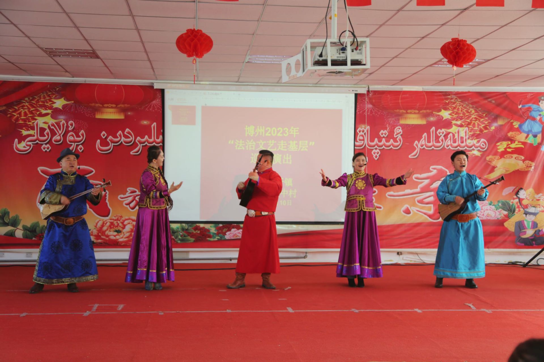 为深入推进“八五”普法规划实施,广泛传播法律知识,弘扬法治精神,用法治之光点亮人心,用法治文化浸润心田,以实际行动践行党的二十大精神,3月10日,由博州党委宣传部、博州党委全面依法治州办、博州司法局主办、博州歌舞团承办的“我们的中国梦”——文化进万家“法治文艺走基层”文艺演出活动走进大河沿子镇呼和哈夏中村。