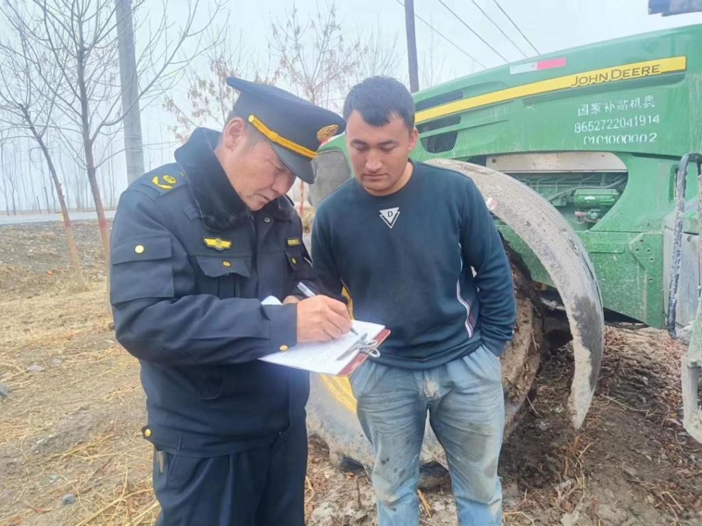 为贯彻“绿水青山就是金山银山”的生态发展理念,持续深入推进“蓝天、碧水、净土”保卫战,全面推进精河县残膜回收工作,履行好“生态卫士”的职责,促进农业绿色可持续发展和农民增收。2023年3月14日,邀请精河县农业农村局执法人员深入大河沿子镇田间地头,对地块残膜回收情况进行监督抽查。