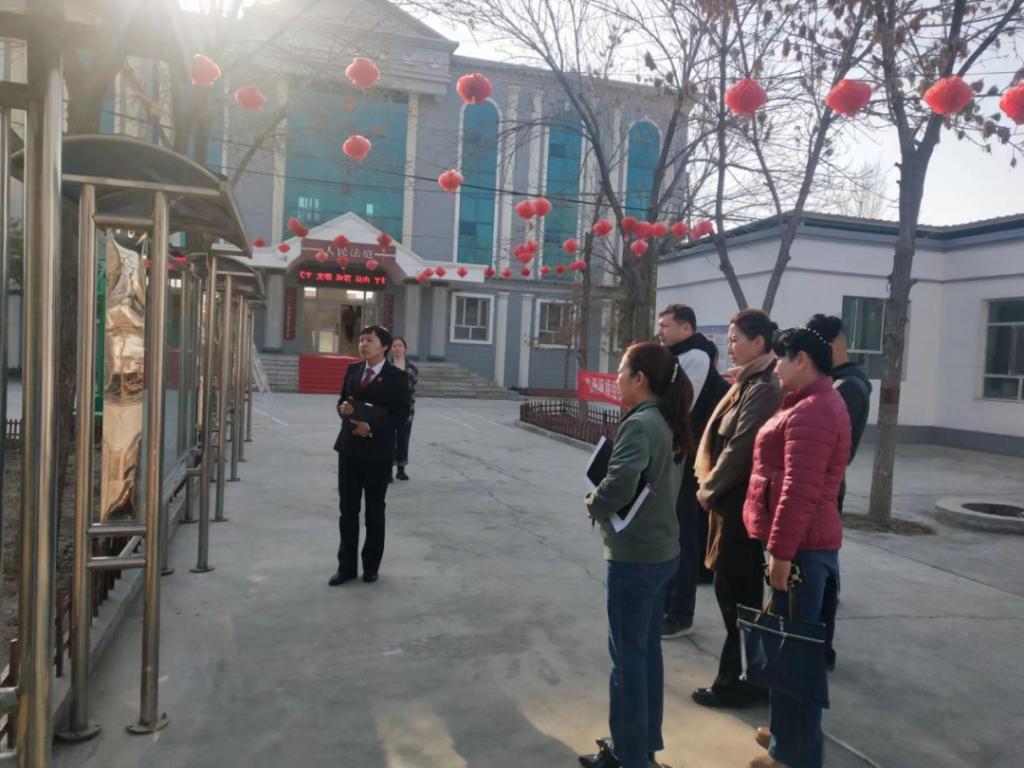 最后,按照今日活动议程,州、县、镇人大代表到大河沿子法庭实地视察,各位代表在刘江莲庭长讲解下,依次参观了庭审室、立案室、老调解室,观看了法庭工作专题片。镇人大代表联络站和法庭互相交换了意见,并针对本镇高发案例进行了讨论,双方在和谐欢快的气氛中结束了本次活动。