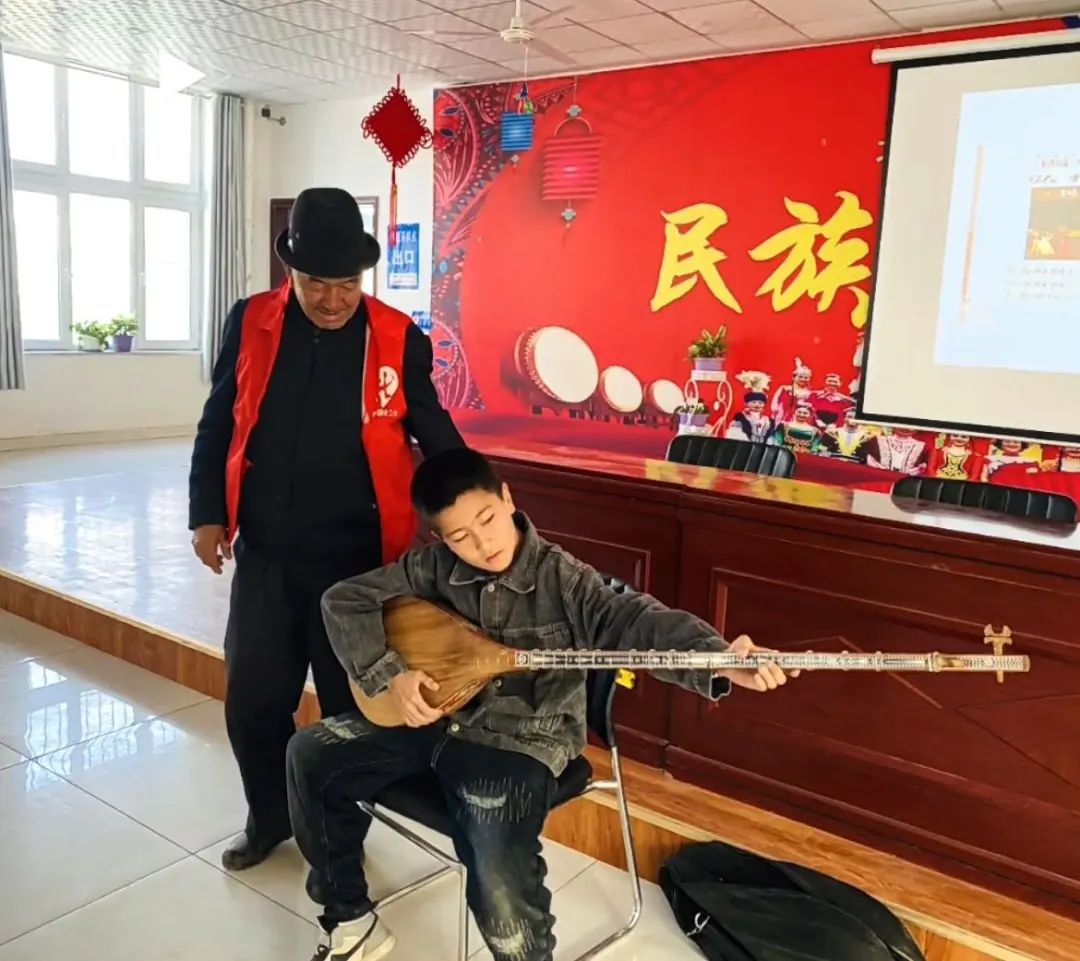 新时代文明实践在精河大河沿子镇|社会工作服务站开展民族乐器学习活动