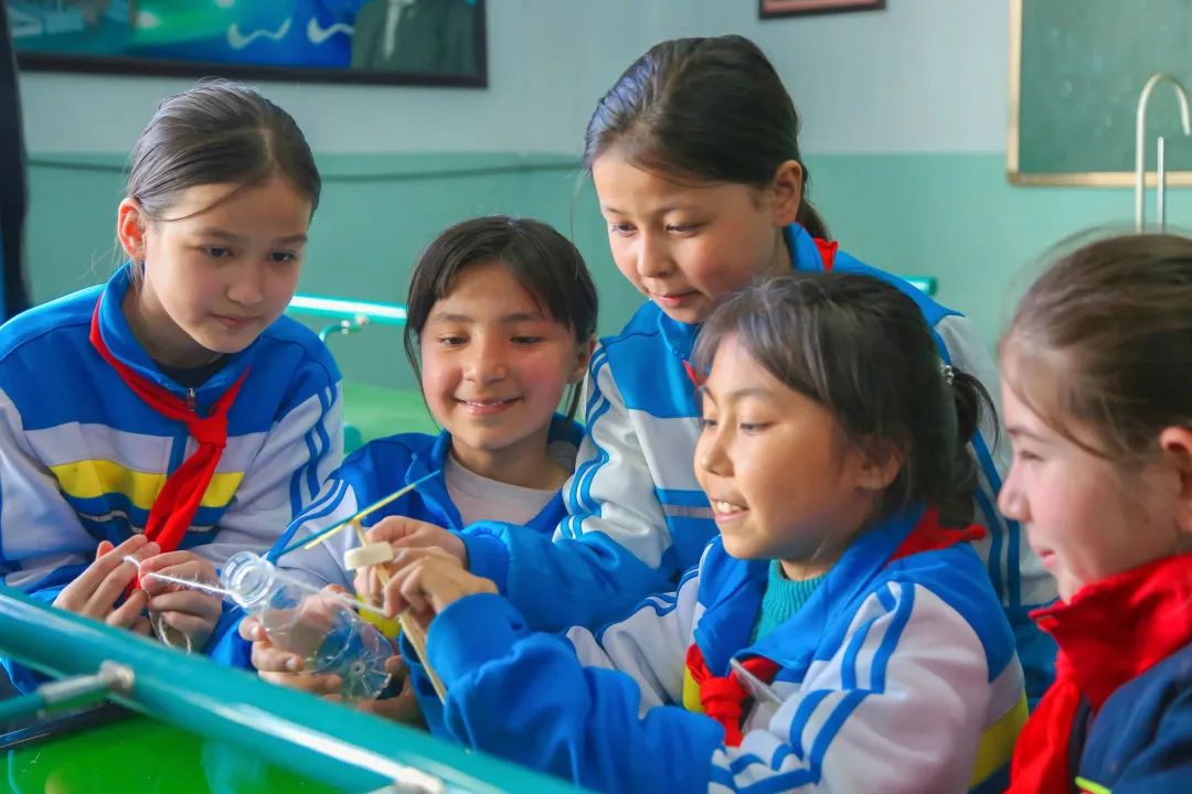 为推进“双减”政策有效落实,促进“五育”并举和学生核心素养的提升,该校开设涵盖体育、科技、艺术等不同门类的缤纷多彩社团活动,成立校级社团11个,年级社团23个,满足学生多样化学习需求,孩子们兴趣盎然,积极参与。在科学社团教室内,每个孩子手里都有一个自己制作的“飞行器”,“飞行器”是孩子们用废弃的瓶子和木条制作而成,这些生活垃圾在课堂中焕发了新生机。科学社团教师努苏来提·努尔拉说:“在实操过程中,孩子们通过剪、切、粘等过程来完成模型的制作,这个过程不仅培养了孩子们的动手动脑能力,发展了他们的思维,还激发了他们的创造能力。”